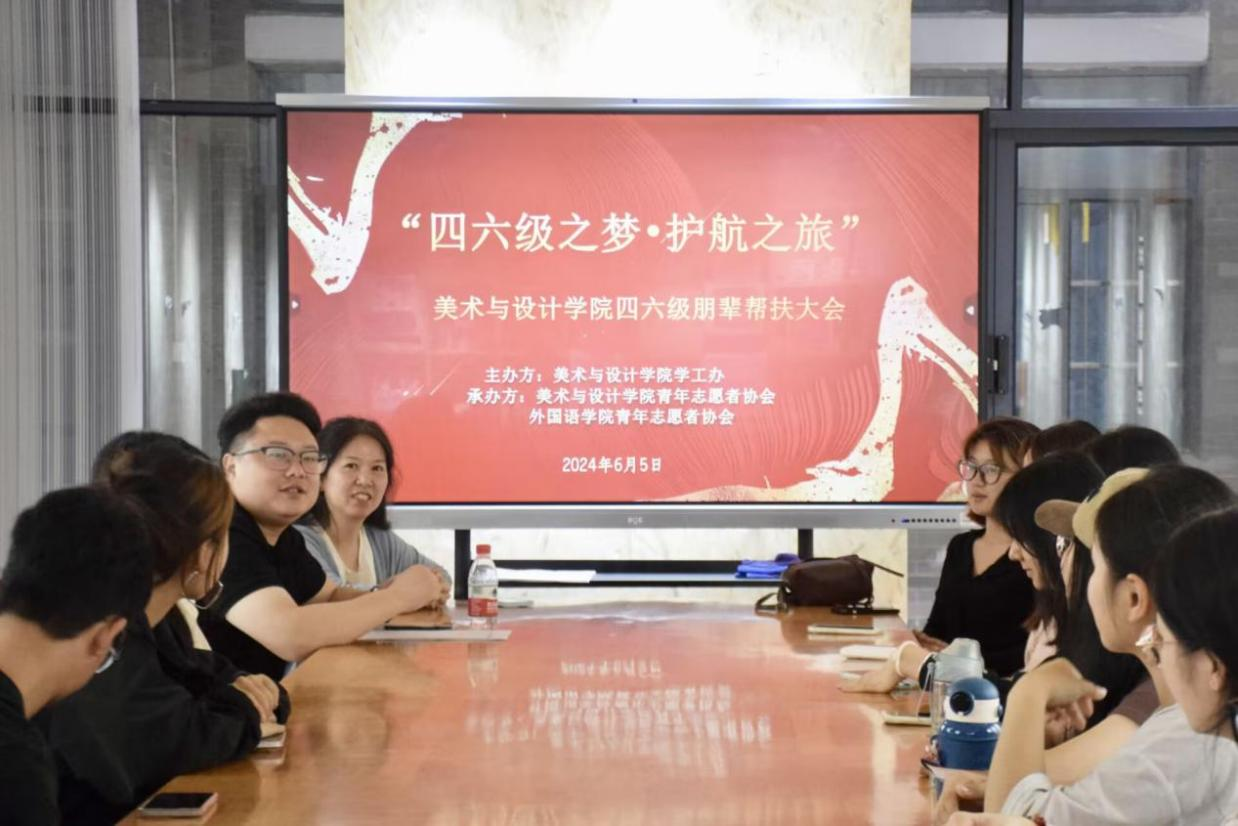 2024年6月5日,52av 与美设院主办方以及两院志愿者,齐聚鹤鸣楼二楼多功能展厅,共同开展此次主题党日活动,为“四六级之梦▪护航之旅”活动保驾护航。