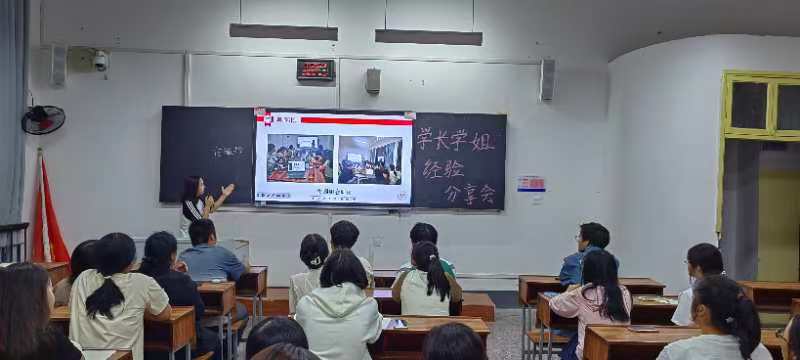 活动伊始,成铎文同学首先介绍了本班的培养方案以及双导师制的相关情况。他建议同学们要对自身的兴趣、能力及不足进行深入分析,并在了解导师研究方向的基础上,选择适当的时间与心仪的导师进行深入沟通,以实现最佳匹配。他还建议同学们转变学习方式,从“被动接受”转向“主动进取”,在向老师请教的同时,具备组织集体学习和自我学习的能力。