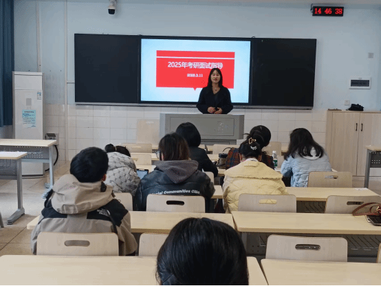 指导会上,首先学生参加模拟面试,由指导教师提问并对学生的表现做点评。其他学生在观摩中学习,总结经验。模拟面试后,指导老师就普遍存在的问题做了提醒,建议大家认真分析考研目标学校和专业的面试要求,通过勤练、互助等方式做好充分准备。另外,也鼓励大家要对自己充满自信,在面试中突显个人优势,发挥出应有的水平。
