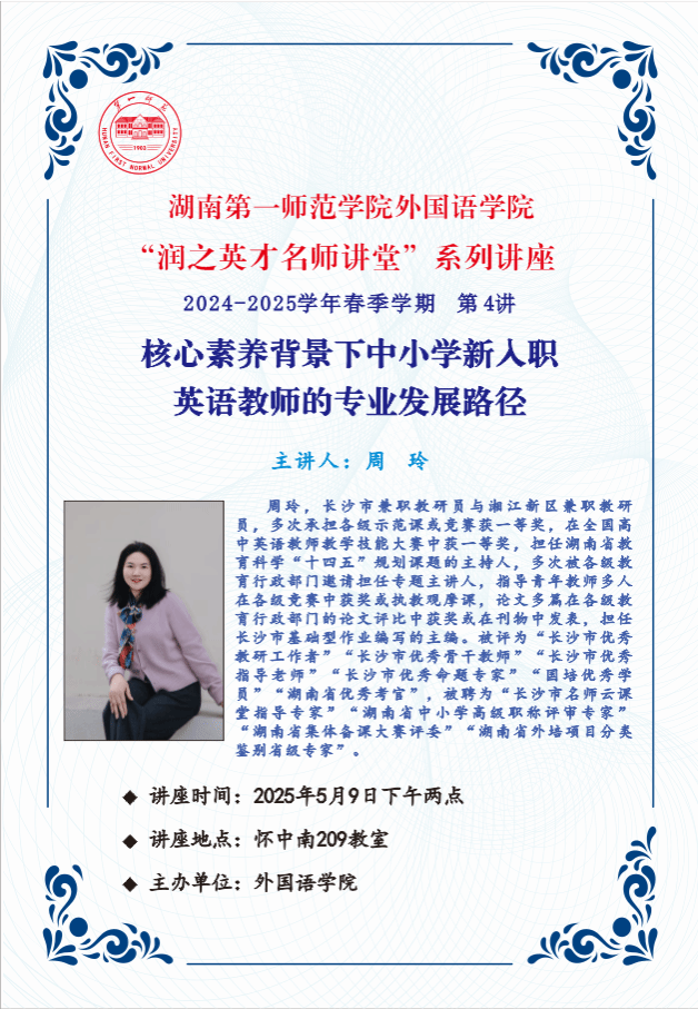 学术预告 | 湖南第--师范学院52av “润之英才名师讲堂”系列讲座