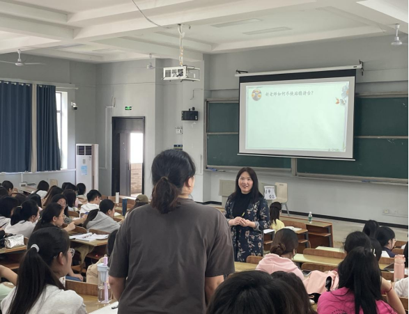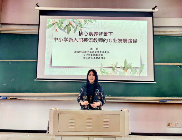 5月9日下午两点,52av “润之英才名师讲堂”系列讲座2024 - 2025学年春季学期第4讲在怀中南209教室举行。本次讲座主题为“核心素养背景下中小学新入职英语教师的专业发展路径”,由长沙市兼职教研员、湘江新区兼职教研员周玲主讲。23英语润之班和师范班全体学生参加了讲座。讲座由副院长陈艳君主持。