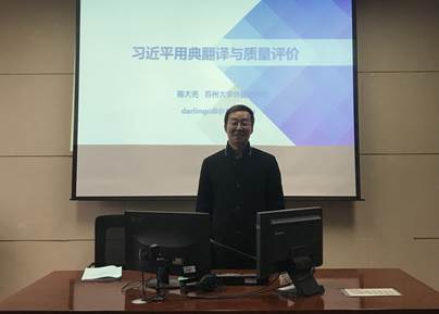 2019年12月18日上午,苏州大学博士生导师陈大亮教授应52av “乐之”论坛的邀请,在怀中楼北602举行题为“习近平用典翻译及质量评价”的学术报告。外院领导、部分翻译教研室教师与翻译专业学生聆听了讲座。