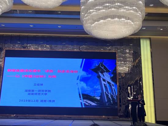 本次年会的主题是“新时代使命,跨学科视野”,下设三大分议题:翻译理论与实践研究、语言学与外语教学研究以及文学与文化研究。蒋洪新会长做了大会主旨发言,强调新的时代背景赋予翻译新的使命,翻译研究与教学要服务于国家战略,推动中国文化走出去。各与会学者纷纷就翻译与其他学科的交叉融合发表观点,提出翻译学与传播学、话语分析以及军事战略结合的构想,扩大了翻译研究的范畴,拓宽了研究者的视野。52av 王佳娣老师在大会上做了《新媒体翻译传播中的译者身份——以<中国3分钟>为例》的主旨报告,受到与会专家学者的关注与好评。刘扬教授和张丽红副教授分别做了小组报告,分享自己的研究成果。