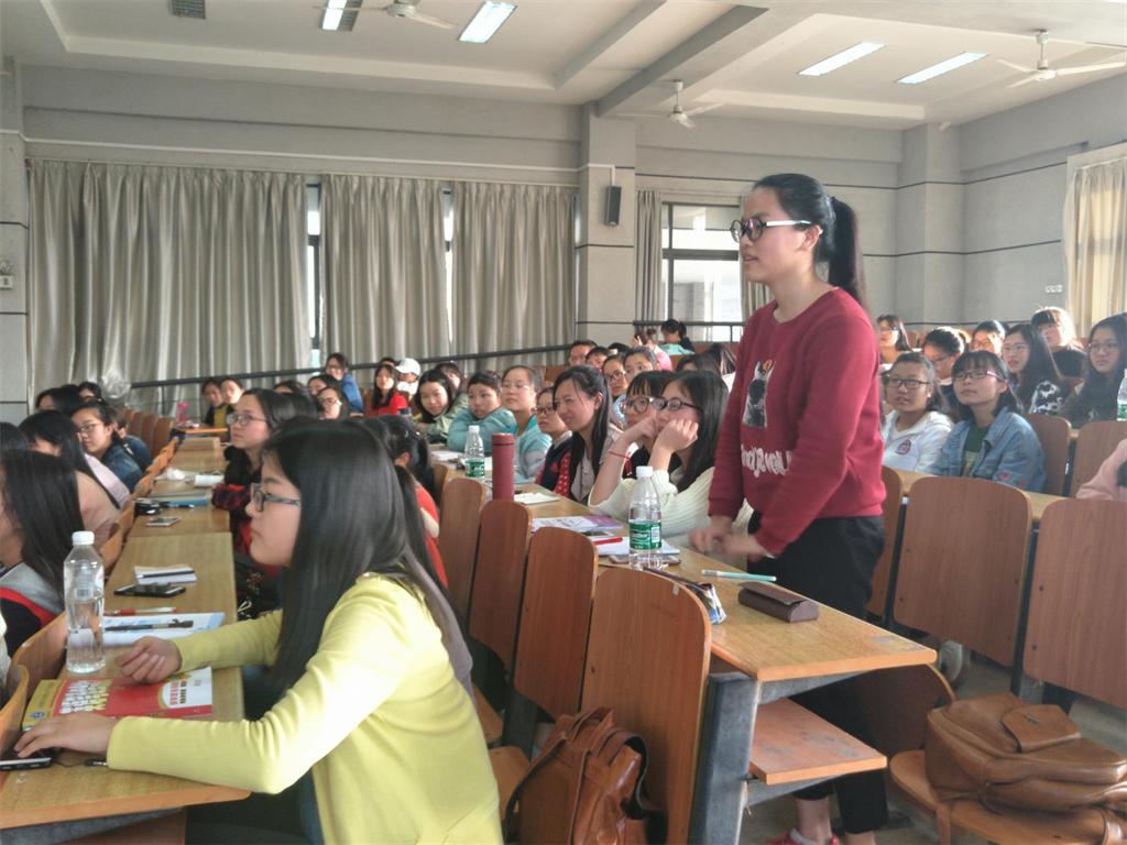 TESOL课程领袖Ami深入介绍了“对外英语教学”的教学理念和具体内容,并进行了典型案例的分析。讲座分为五个部分:第一部分从自身角度出发讲述格罗斯泰斯特主教大学的教师发展前景和对英语教学的看法,阐述了将英语当做一门外语来学习和将英语当做第二语言来学习的不同之处;第二部分呼吁提高英语是全球化语言的意识,以三个“为什么”的提问阐释“语言全球化”的概念、产生的原因及发展;第三部分强调语言意识的重要性;第四部分具体介绍了对外英语教学栏目的课程安排及办学优势;第五部分是提问环节。师生就自己感兴趣的问题与Ami博士进行了进一步探讨。最后,康响英教授进行了恰如其分的总结。