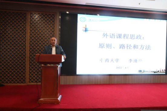 教育部高等学校大学外语教学指导委员会委员,电子科技大学副院长,教育部课程思政示范课程团队成员胡杰辉教授做了题为《外语课程思政的系统观与新常态》的专题报告。从系统观和新常态课程建设两个切入点提出了课程思政要避免三个误区,不能忘了育人、忘了学科、忘了初心。