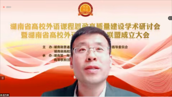 今天是我们湖南省高校外语课程思政高质量建设具有里程碑意义的一天,因为湖南省高校外语课程思政联盟正式成立了,标志着湖南省高校外语课程思政高质量建设正式拉开了序幕。相信在联盟的统筹规划下,有各联盟学校外语教师的齐心努力、砥砺奋进,湖南省外语课程思政建设肯定能行稳志远,硕果累累。