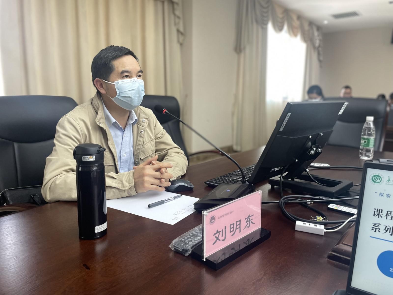 刘明东教授以《“以赛促教”推动语言类课程思政高质量建设》为题分享了对语言类课程思政内涵的解读,并向拟参加校级课程思政教学竞赛的老师们提供了切实有效的建议。刘教授从竞赛要求、教学原则、有效路径、案例分析四个维度对语言类课程思政建设问题进行了深度阐释,着重结合本人作为国家级和省级外语课程思政教学比赛评审专家的经历,对准备课程思政教学比赛的关键要点和主要难点进行了分析讲解,并提出语言类课程融入思政需要坚持科学性、注重时代性、体现民族性三个原则,实施精选内容、精心设计、精彩呈现三个有效方法。