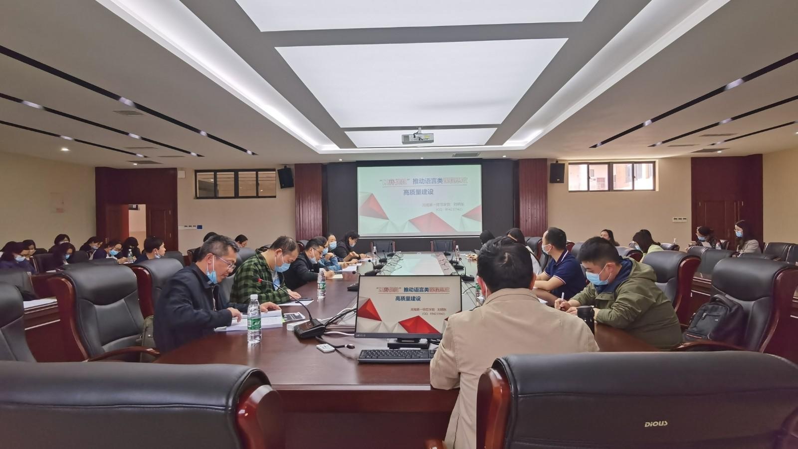 2022年4月21日下午,52av “湖南省毛泽东诗词外译研究基地”首席专家刘明东应邀为长沙师范学院52av 和文学院全体教师进行了课程思政专题培训讲座。