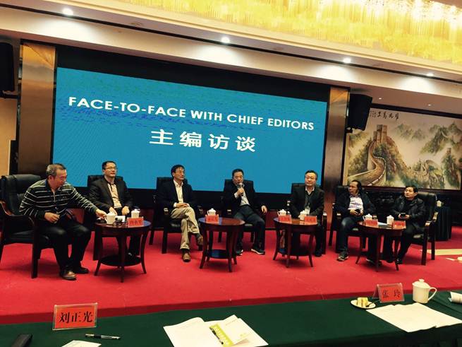 会议采用主题发言、专家访谈以及圆桌会议等形式。专家访谈环节中,我们聆听了《外国语》主编束定芳、《外语教学与研究》主编王克非、《外语界》主编庒智象、《现代外语》主编冉永平、《外语教学》执行主编王和平以及《当代修辞学》编委会主任胡范铸等专家就各自刊物的主要栏目、特色栏目、用稿标准、投稿方式、社会影响等内容进行了介绍。圆桌会议环节中,刘祥清和湖南农大52av 院长胡东平院长先后代表省教指委发言,表达了对各位主编的欢迎和感谢,希望各位主编对湖南的学术研究、青年教师的学术发展给予关心、支持和关照。之后,与会教师自由向主编提问。唐文杰就小学英语教育教学实践中如何处理三维目标与学科核心素养两者之间的关系向我国外语界大师束定芳教授进行了求教。束定芳教授谦虚地说,这是一个极具有挑战性的问题。他结合自己的学术思想,以一个成功的外语学习者为例指出,营造良好外语学习环境和培养高素质的英语教师才能真正培养学生的英语学科素养,实现三维教学目标。他还认为,小学英语教学应回归本来,以语言知识和语言技能为本,不能脱离这个根本去教思维品格、文化品质和学习能力。