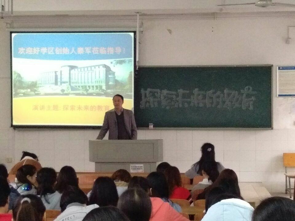 2017年3月7日下午,应学院“乐之讲坛”邀请,“好学区”微课资源平台创始人、深圳前海好好学教育有限公司CEO秦军先生来52av 进行学术讲座。讲座题目为:探索未来的教育。讲座由52av 刘祥清院长主持,学院部分师生聆听了本次讲座。