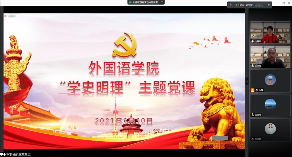 为进一步推进党史学习教育走深走实,3月30日19:30,52av 党总支开展“学习明理”专题学习研讨,党总支书记李亚林为全体党员讲党课,学习通过腾讯会议的形式进行。