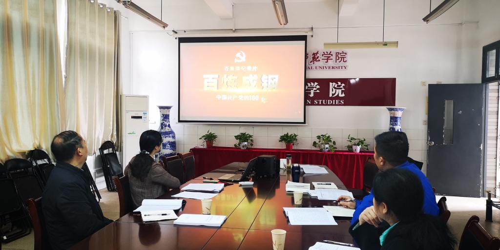 李亚林传达了全省教育系统全面从严治党工作视频会议精神,并就“学史增信”阶段有关学习要求及活动进行了强调和安排。与会人员还集体观看了《百炼成钢—中国共产党的一百年》第一集。