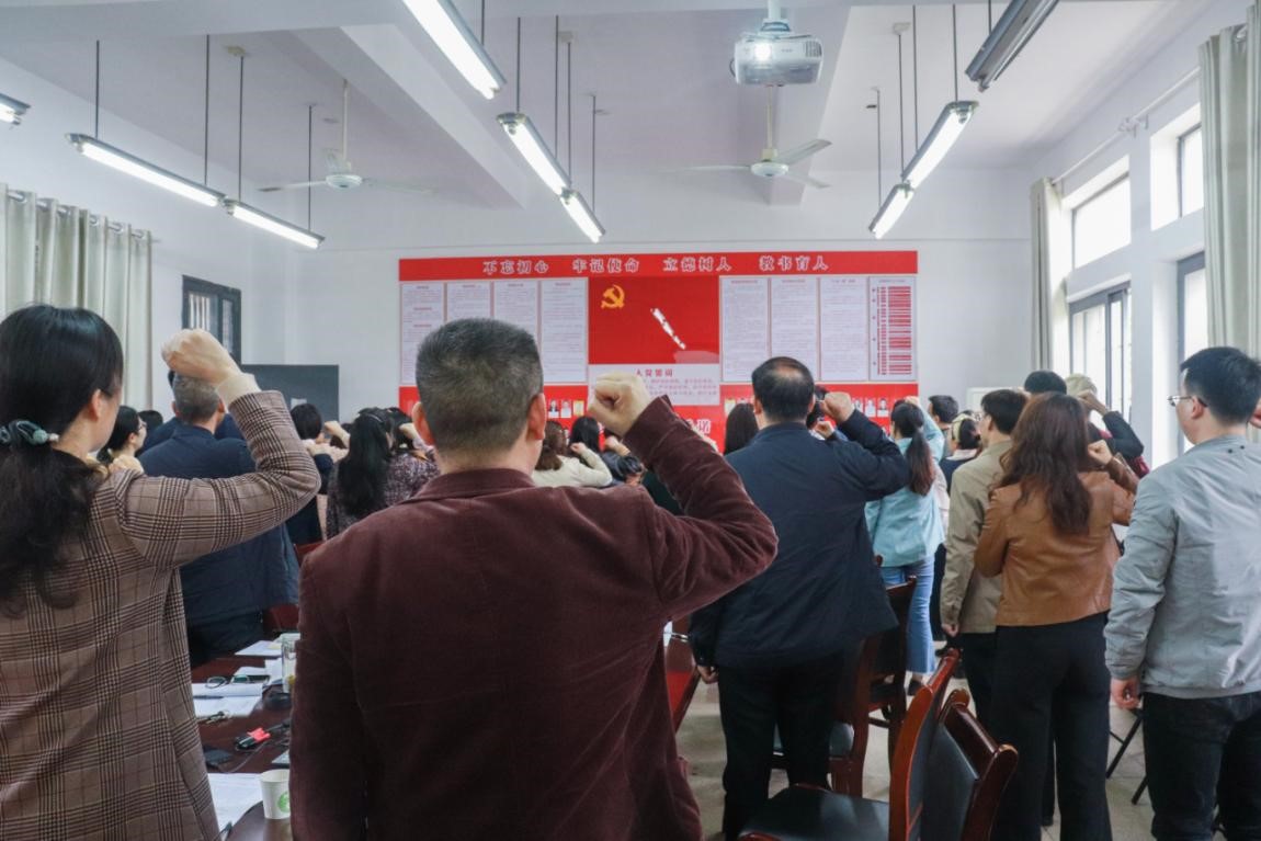 全体党员面向党旗庄严宣誓。