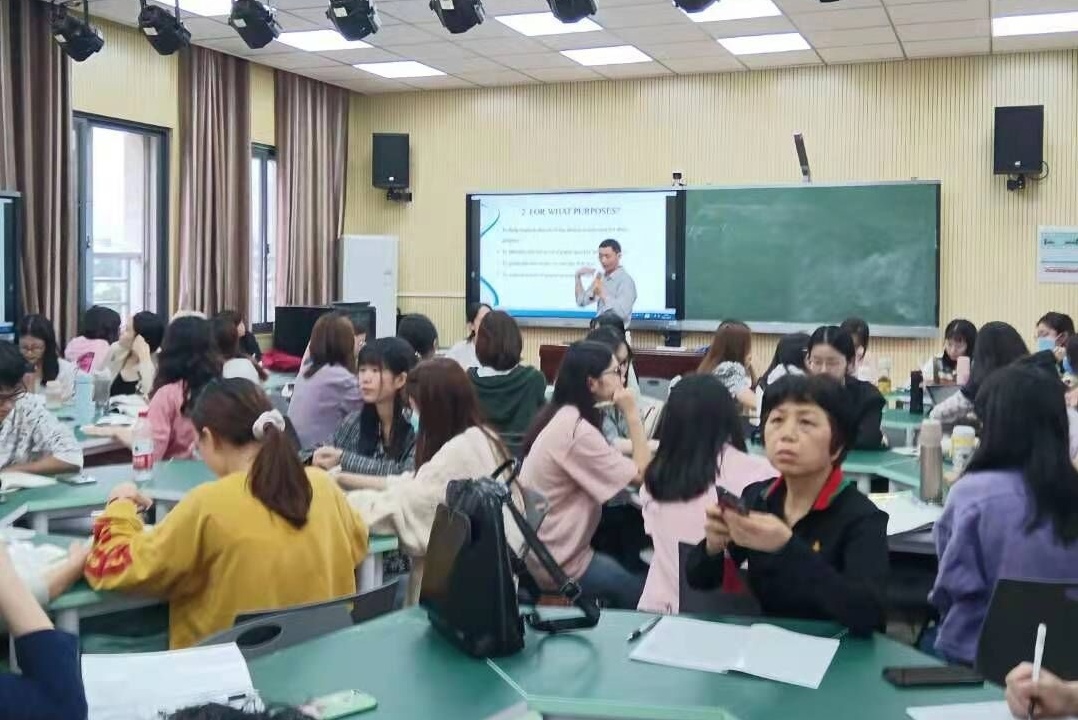 5月24日至27日,学院教务办组织安排了5堂院级示范观摩课。英语专业1教研室雷志斌老师的《学术写作与研究方法》,依托课堂派平台针对论文摘要的写作,实施翻转课堂,采用模式化训练,讲授逻辑清晰,重难点突出,侧重案例教学,讲练结合,学生参与度高,在培养学生科研兴趣、论文写作能力的同时,也培养里思辨能力,常远佳老师的《高级英语(二)》解读了课文Marrakesh 中Jews-cigarettes的场景,深入剖析了Jews的生活环境、工作环境、经济状况,以及受到的种族歧视,并结合当前美国的witch-hunting的现象,挖掘美国社会的种族歧视,乃至种族仇恨,启发学生思考应采取何种态度处理民族问题,以激发学生的民族优越感和自豪感。英语专业2教研室周超英老师的英语语法课程由浅入深,采用观看视频中的英语并列结构入手,让学生了解并列结构,教师采取信息化教学手段,积极运用信息技术与课堂教学深度融合的新方法、新思路、新技术,使得课堂生动有趣。翻译教研室陈钰老师的《英语国家概况》通过创建情境教授《美国起源》,采用“知识+思政” 、“线上+线下”等模式,有效地将课内学习与课外拓展进行了有机融合,有助于培养学生的英语语言能力、思辨能力、跨文化交际能力、自主学习能力和人文素养。英语基础课程教研室李双老师的《综合英语(二)》教学方法灵活多样,非常注重培养学生的反思能力,教学设计合理,三维目标有机融合,双边活动真实有效,学生参与度高,体现了以学生为中心的理念。精彩的示范观摩课堂吸引了全院100多人次到现场观摩,学院教学督导组及教指委的专家全程参与了教学示范观摩活动。学院党总支书记李亚林莅临指导。
