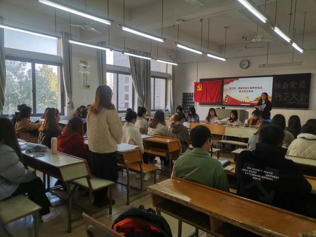 2021年12月6日上午8:30,52av 学生党支部预备党员转正大会在怀中楼北栋208教室顺利开展。52av 学生第一党支部书记张明老师、18级正式党员,2021年下半年26名预备党员的培养联系人老师及26名预备党员参加了本次会议。