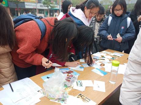 摆点现场提供免费的明信片,同学们写下自己的感激和祝福之语,由志愿者们寄送这些明信片,向身边的老师、朋友表达感谢和祝福、传递爱与温暖。活动现场如火如荼,一张张明信片传递着同学们的爱与感恩之心。