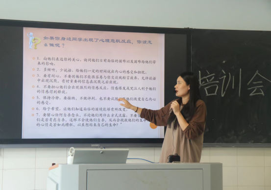 为进一步提高学生的心理健康素质,提升信息员心理危机识别与干预能力,4月2日中午,52av 心理专干刘洁老师组织52av 各班级心育委员、宿管委员进行了《心理危机识别与干预》专题培训,培训从信息员队伍的角色及职责、心理危机的定义、心理危机的识别、心理危机的干预四个方面进行了理论科普及实践指导。