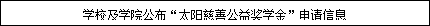 为了帮助湖南贫困学子完成学业,促进教育公平,形成公益传递圈,按照《太阳慈善助学基金会“公益奖学金”评定细则》的有关规定,我校拟推荐12名贫困且优秀的学生作为2022年太阳慈善助学基金会“公益奖学金”推荐人选,奖励标准为3000元/人,现将评选活动有关事项通知如下: