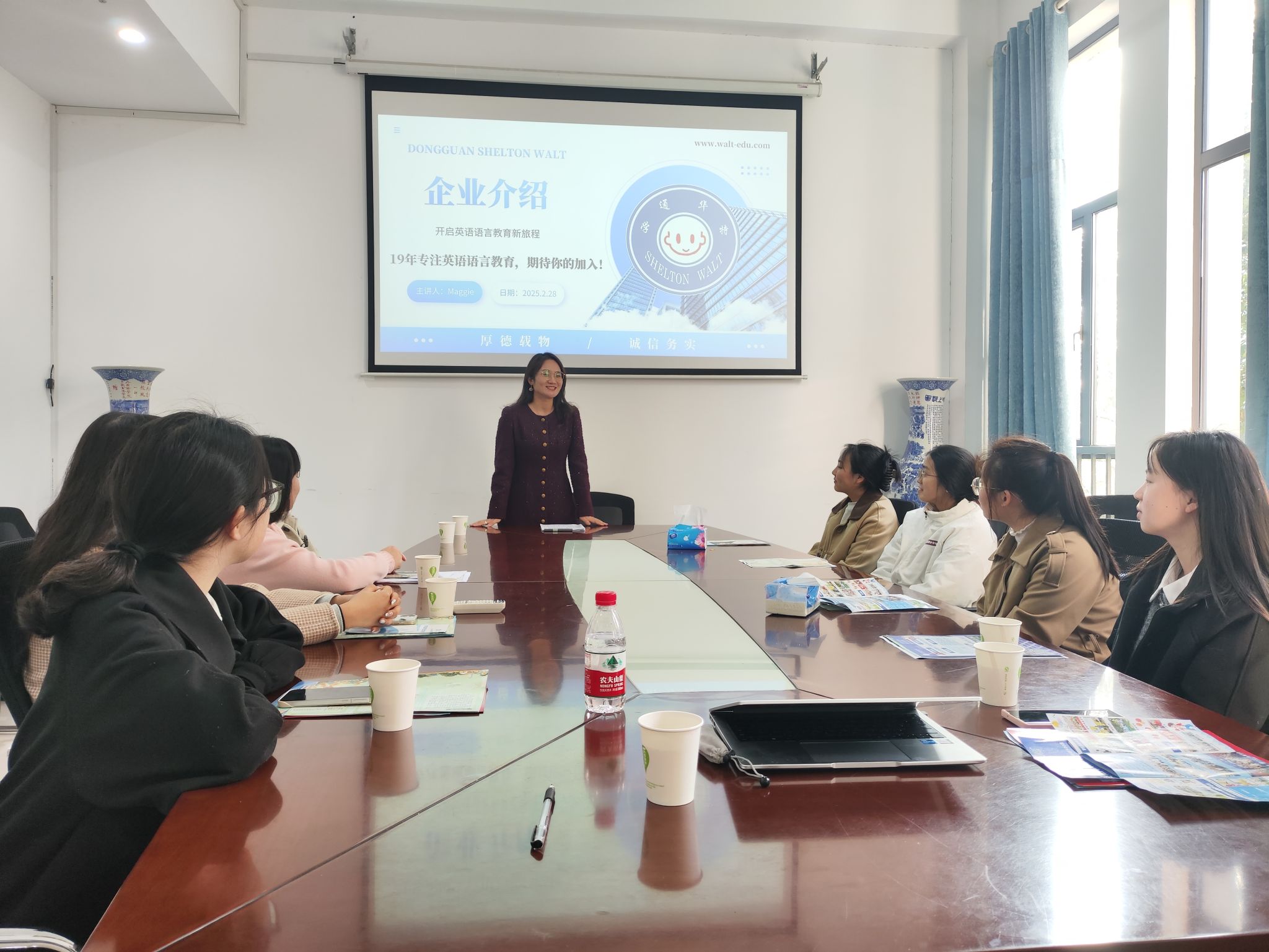 宣讲会上,华特教育教学总监就企业的发展历程、核心业务以及未来的战略规划为同学们做了详细介绍,并对此次招聘计划和岗位需求做详细了说明。宣讲会结束,14名毕业生参加了接下来的面试环节,面试主要考察毕业生的英语演讲、英语听说能力和应变能力等。
