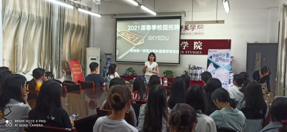 深圳蓝天教育教学总监Anna向同学们介绍了公司的概况、职业发展方向、人员需求、薪资待遇等情况。随后,12名有意向的毕业生与招聘人员进行了深入的沟通和面试。最终有9位毕业生顺利通过面试,拿到了offer。