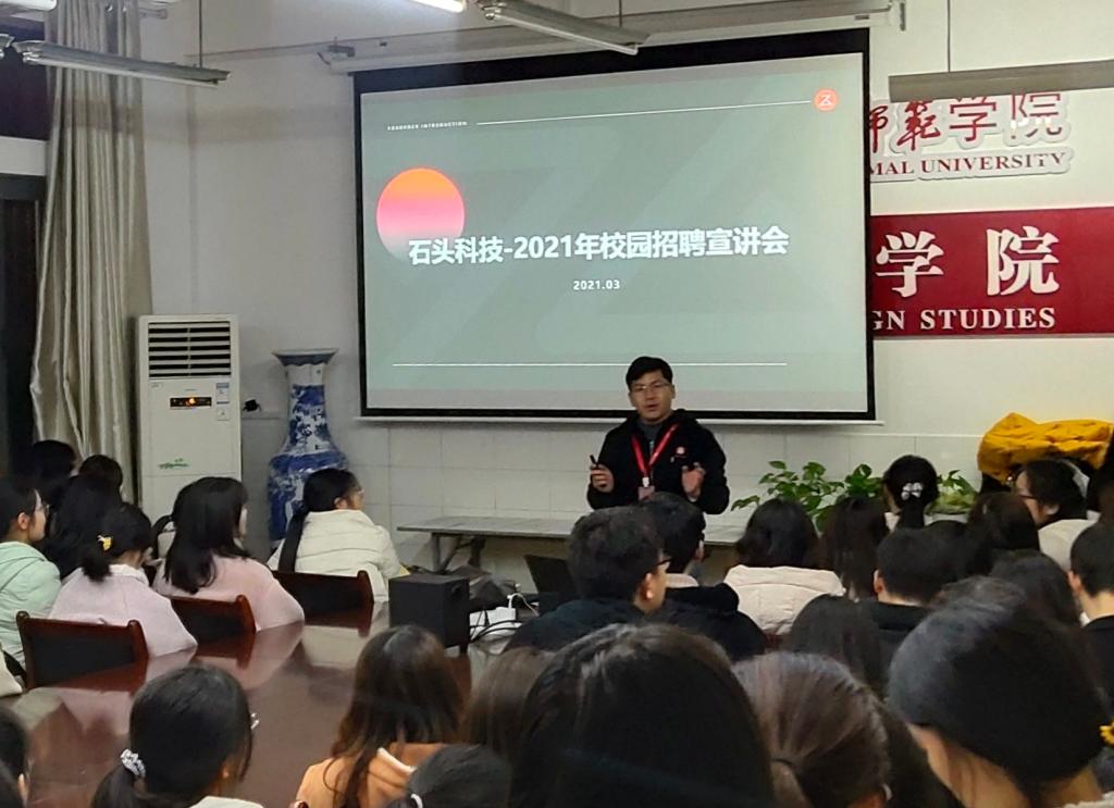 3月10日晚,52av 邀请北京石头世纪科技股份有限公司在怀中北206进行招聘宣讲,100多名毕业生参加本次招聘宣讲会。