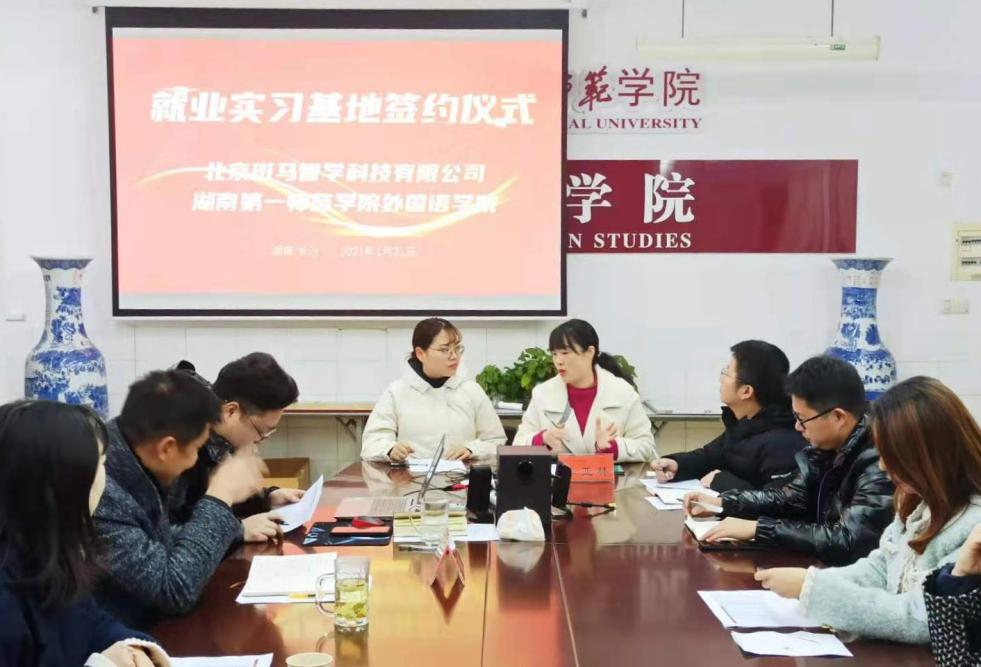 2021年1月21日上午,52av 与北京斑马智学科技有限公司签订了校企合作实习就业基地协议。学院党总支书记李亚林、党总支副书记杨虎智、北京斑马智学科技有限公司长沙分公司人力资源经理郎苗苗,以及双方代表等共13人参加签约仪式。