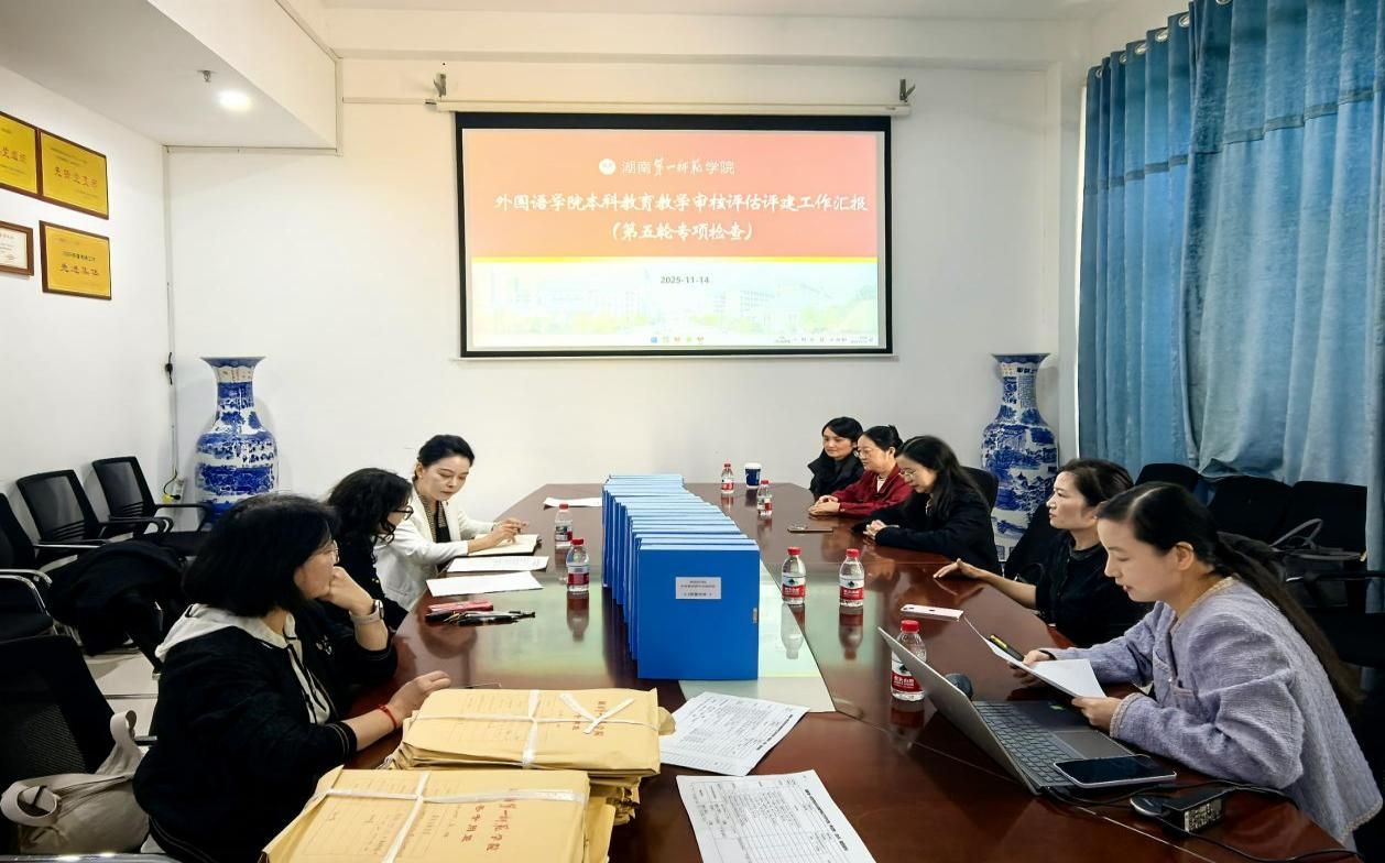 为扎实推进本科教育教学审核评估评建工作,确保各项任务落细落实,11月14日下午,学校专项检查组组长周发明教授莅临52av ,开展第五轮专项检查。检查以材料查阅、教师座谈、汇报交流相结合的形式进行,学院领导班子、系室主任、教科办成员及教师代表全程参会。
