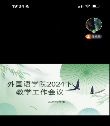 9月4日19:30,52av 通过腾讯会议召开期初教学工作会议,全面部署新学期各项工作,确保教学秩序井然、工作高效推进。副院长陈艳君,副院长王佳娣,系室主任,督导,教科办老师参会,会议由陈艳君主持。